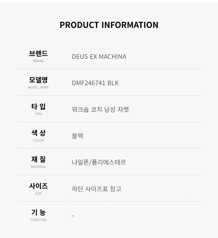 데우스엑스마키나 DMF246741 BLK (Workshop) 워크숍 코치 남성 자켓