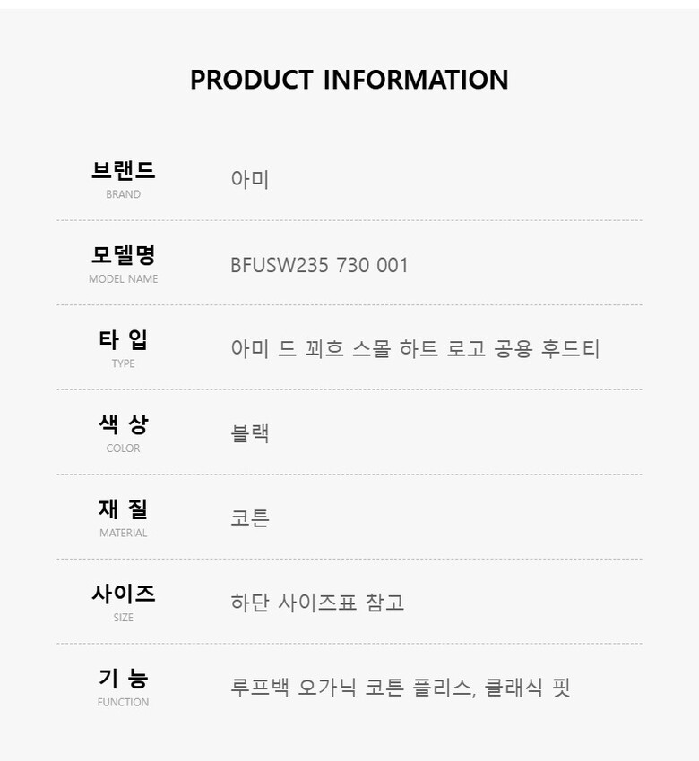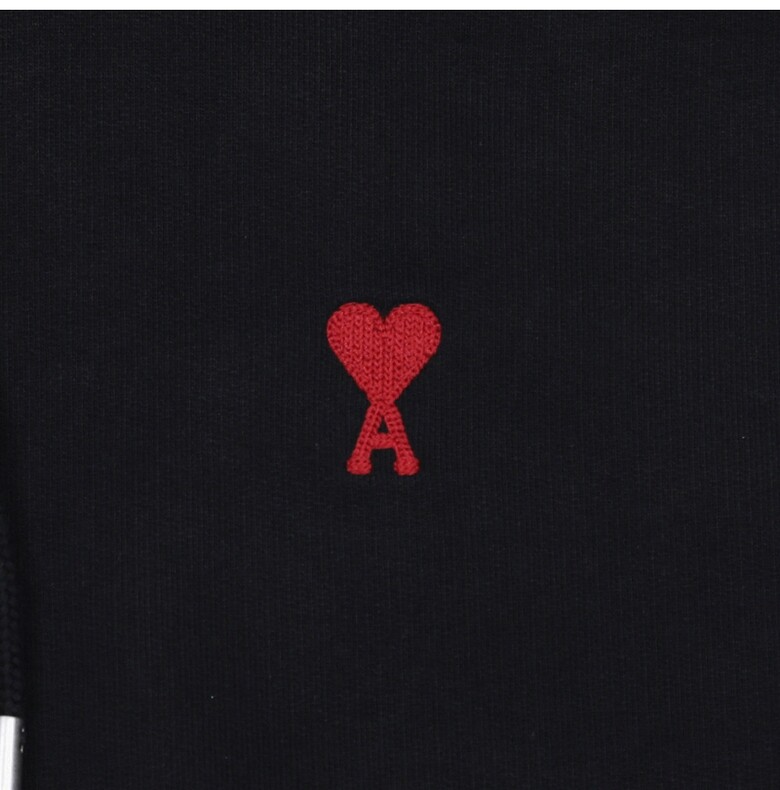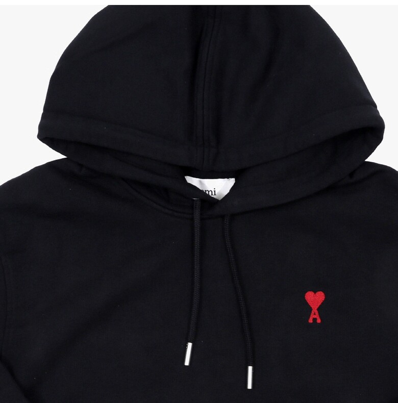AMI BFUSW235 730 001 아미 드 꾀흐 스몰 하트 로고 공용 후드티