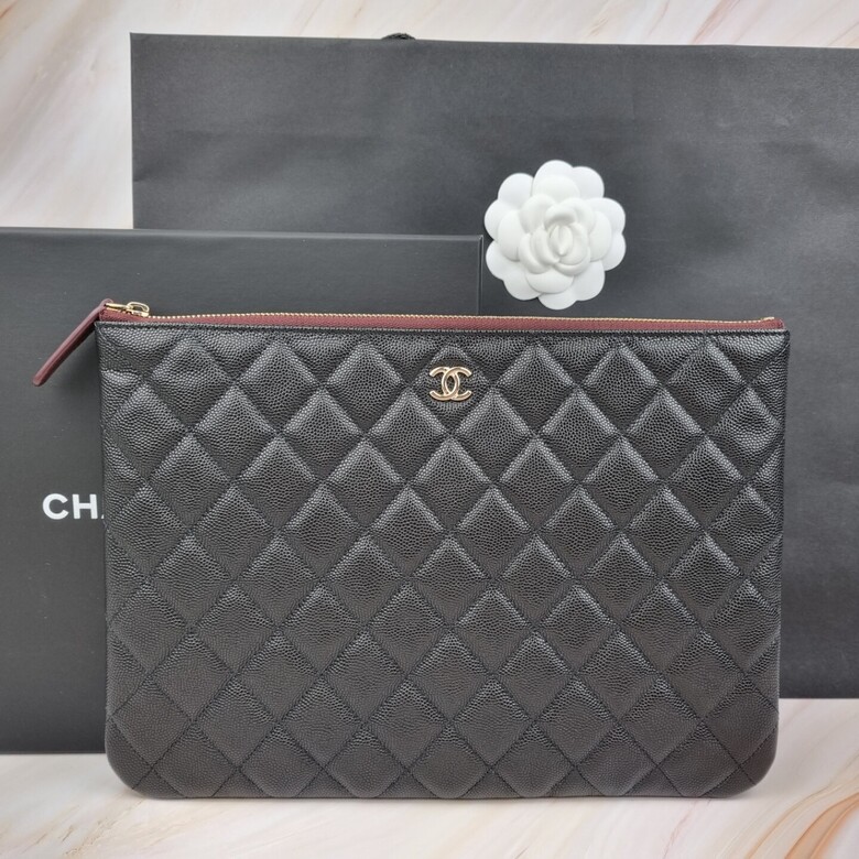 [명품] 샤넬 클래식 클러치 파우치 캐비어 블랙 뉴미듐 금장 A82545