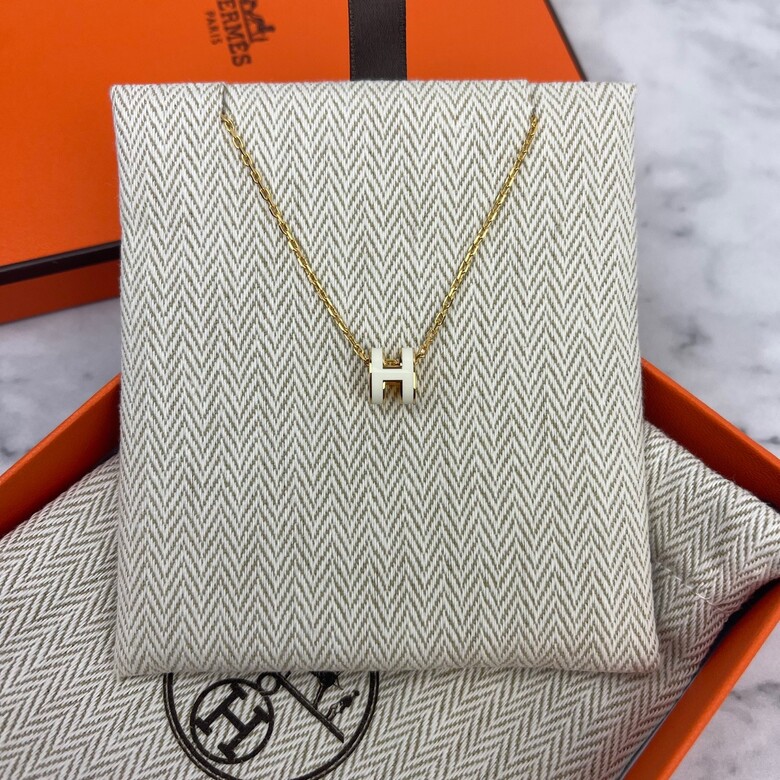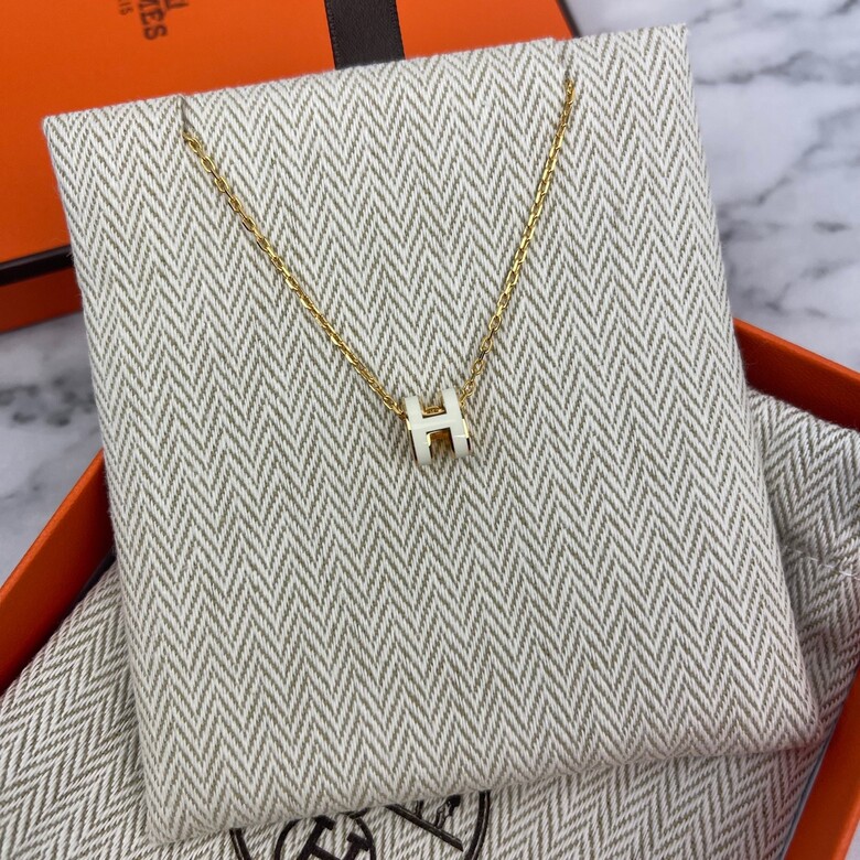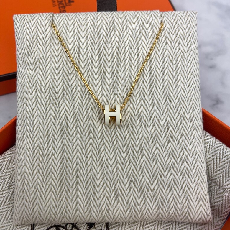 [명품] 에르메스 미니 팝아슈 여성 목걸이 넥클리스 화이트 블랑 골드