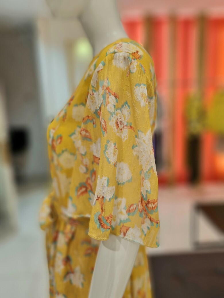 브이넥 반팔소매 허리라인 없는 끈벨트로 연출되는