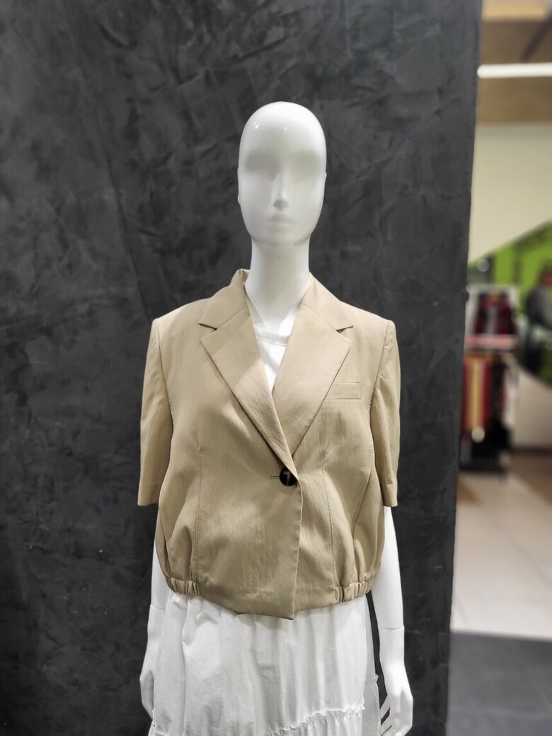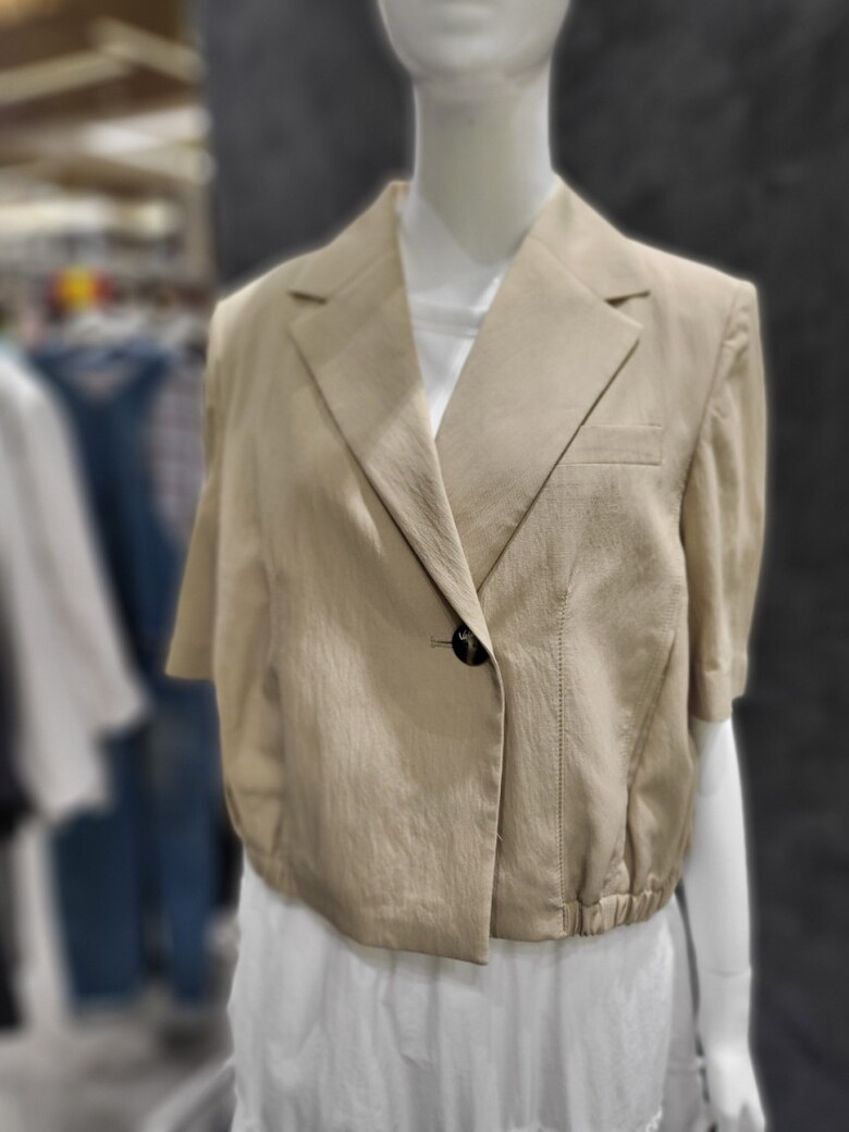 적당한 품과 크롭 기장감의 반팔 자켓 디자인이며,