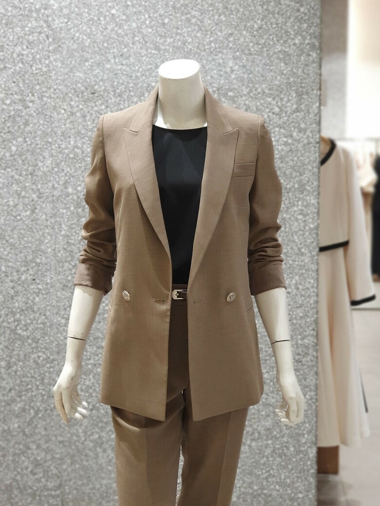 더블브레스트 디자인으로 클로징 실루엣이 멋스러우며