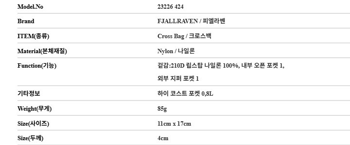 피엘라벤 가방 23226 424 하이 코스트 포켓 0,8L 크로스백 당일발송