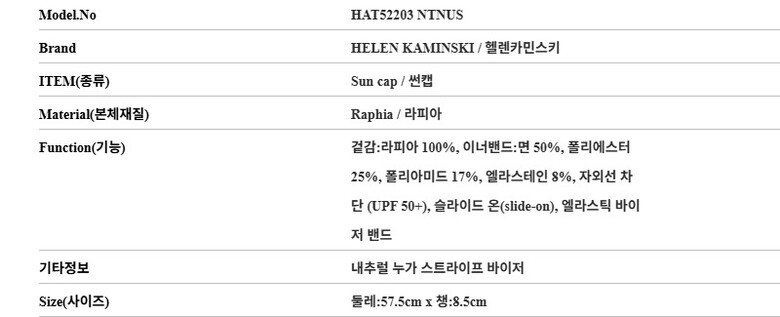 헬렌카민스키 모자 HAT52203 NTNUS 비앙카 8 내추럴 누가 스트라이프 바이저 썬캡 당일발송