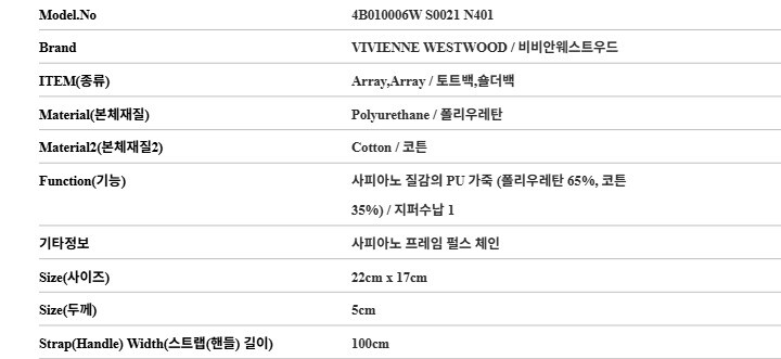 | 5. 제조사 | 비비안웨스트우드/(주)언커먼레이블-병행수입 |