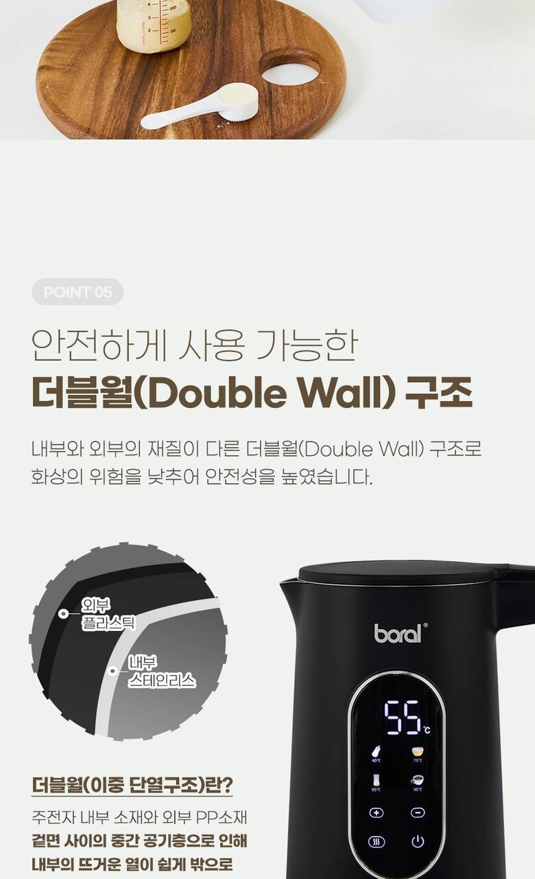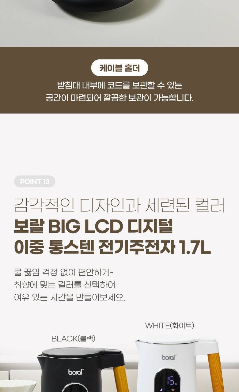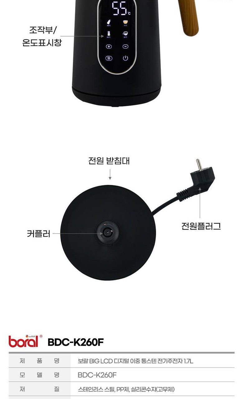 보랄 BIG LCD 디지털 이중 통스텐 전기주전자 1.7L BDC-K260F