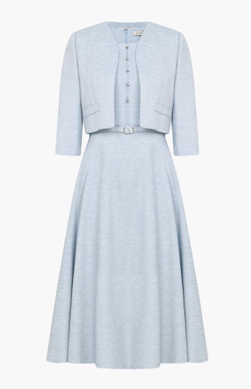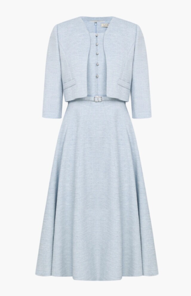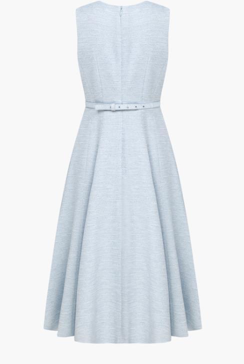 허리라인을 슬림하게 잡아주는 탈부착 가능한 벨트와 밑단 플레어 라인으로 페미닌한 무드를 완성해줍니다.