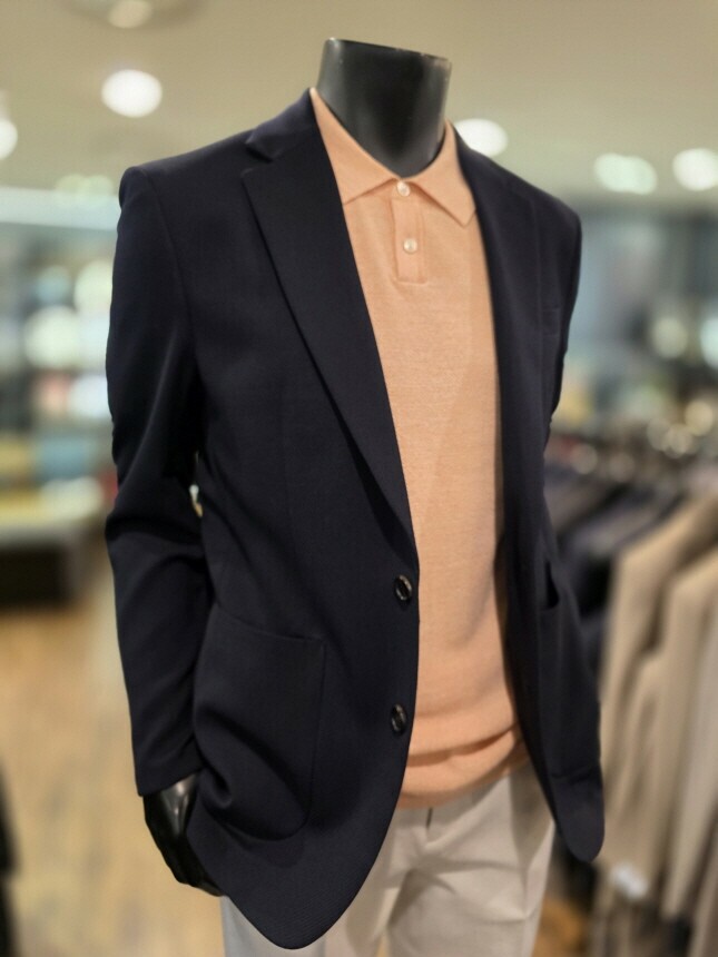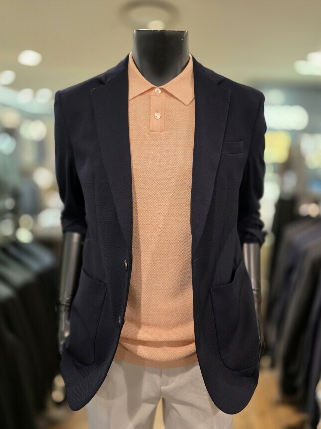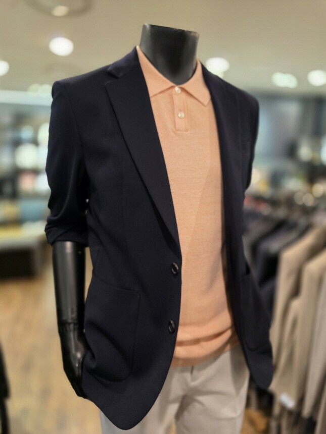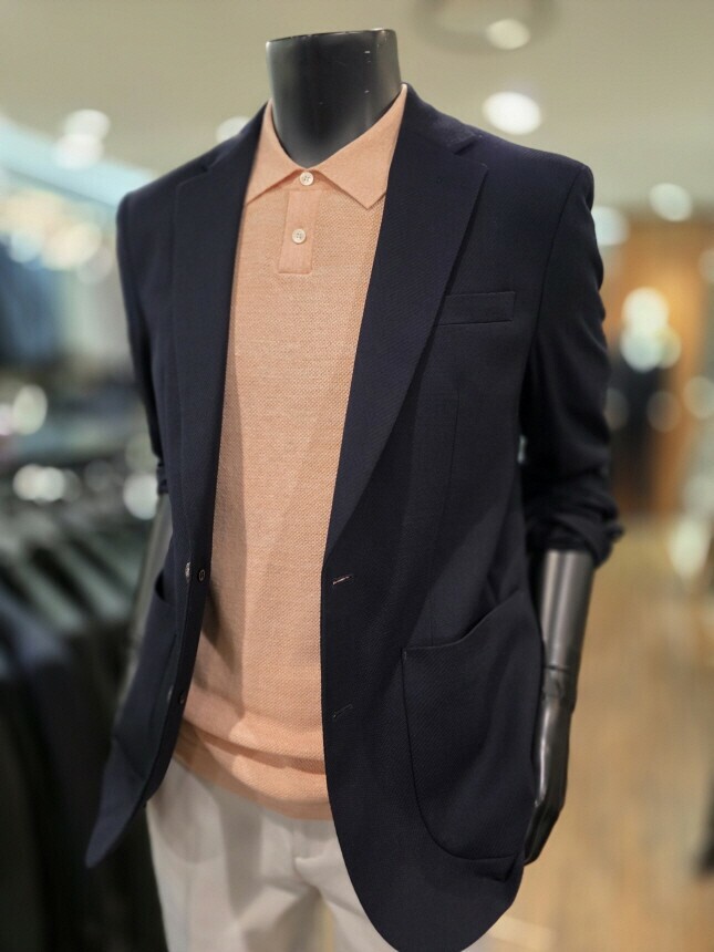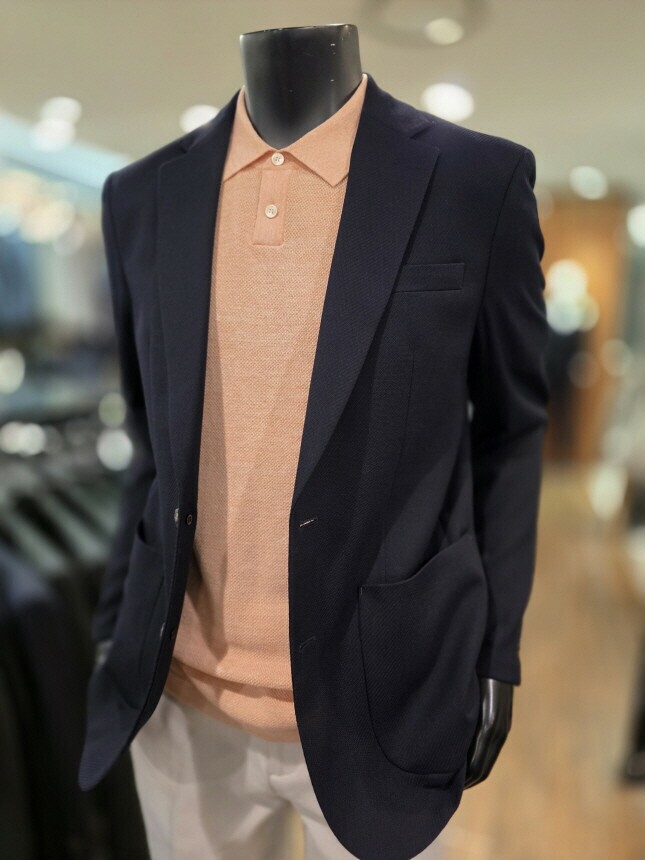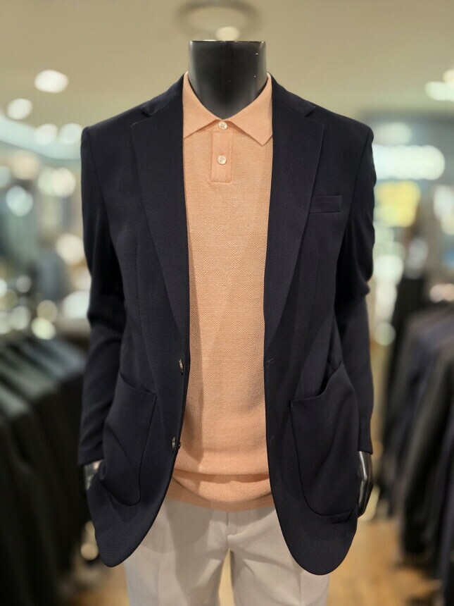 [바쏘옴므] Z1JS12A 25년 S/S 네이비 매트조직 아웃포켓 스트레치 캐쥬얼 재킷