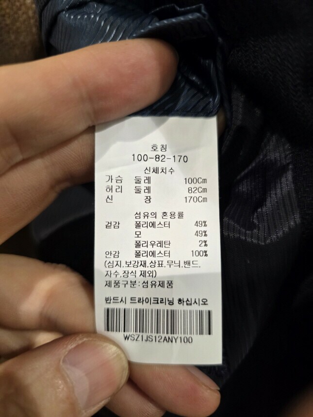 겉감 : 폴리에스터 49% , 모 49% , 폴리우레탄 2%