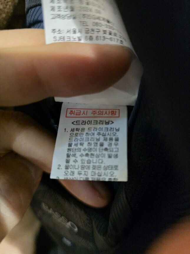 | 6. 세탁방법 및 취급시 주의사항 | 드라이크리닝 |
