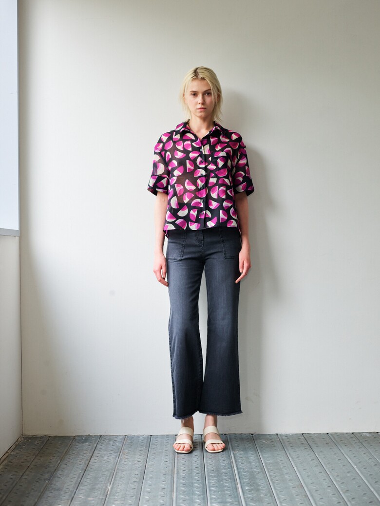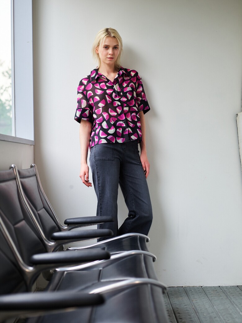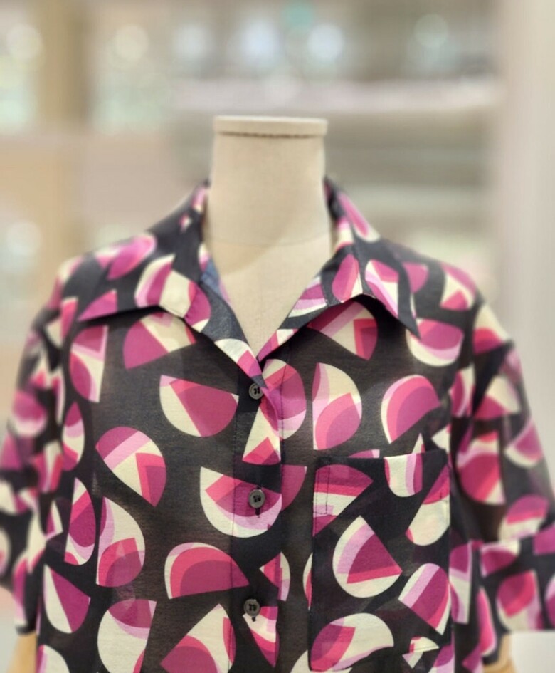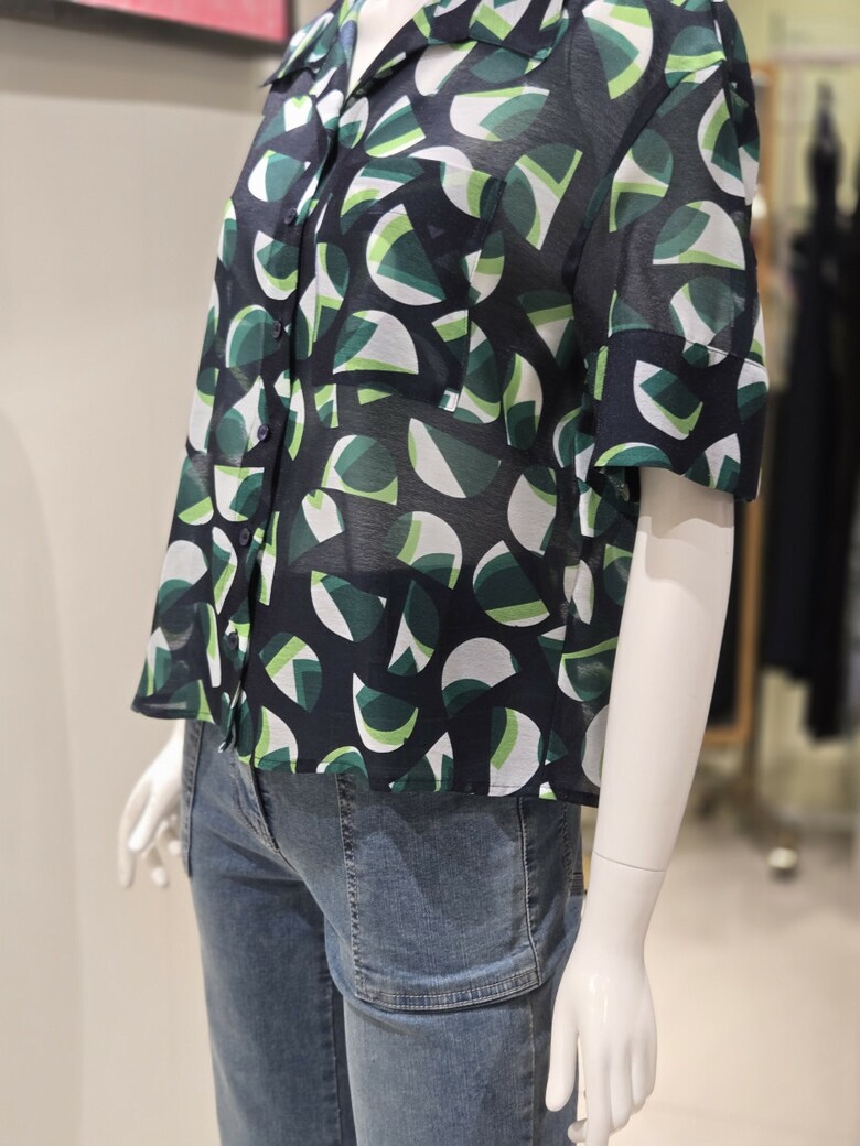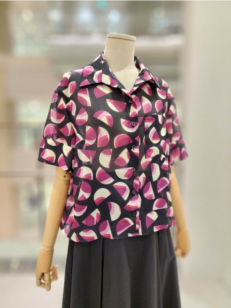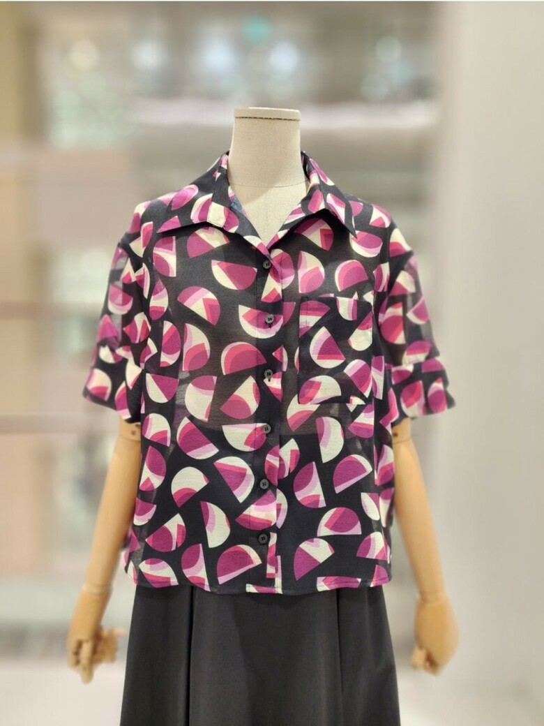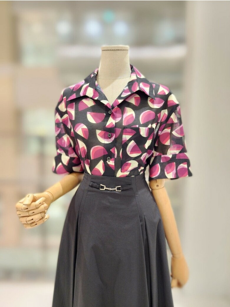 [발렌시아]프린트 셔츠형 카라 블라우스 245MB40