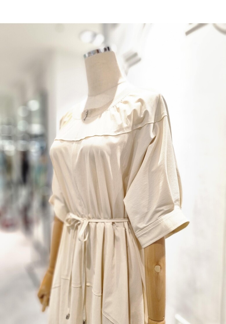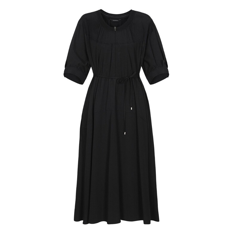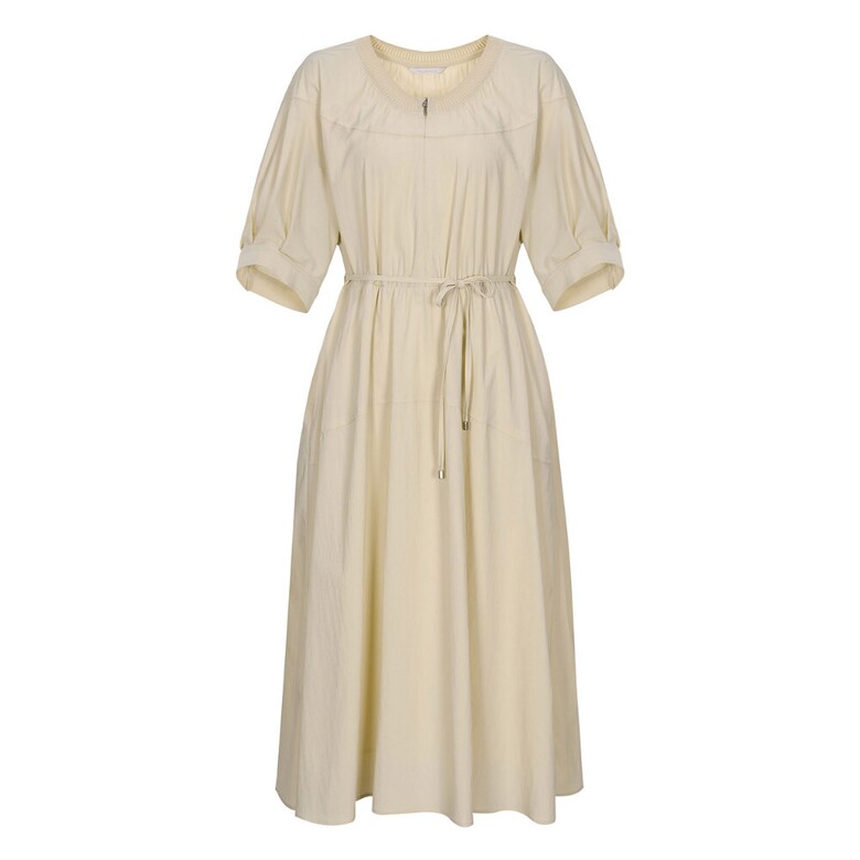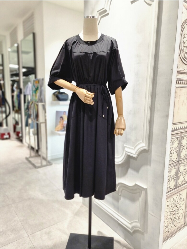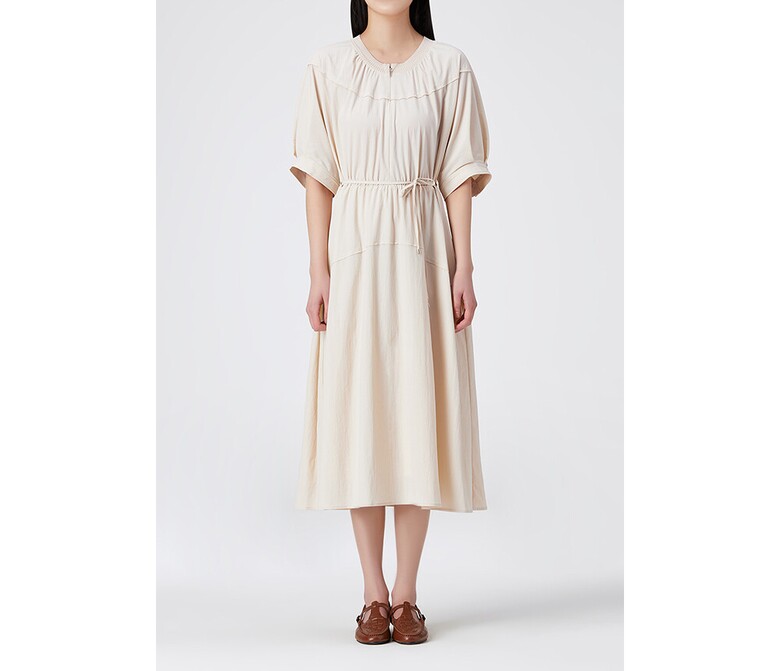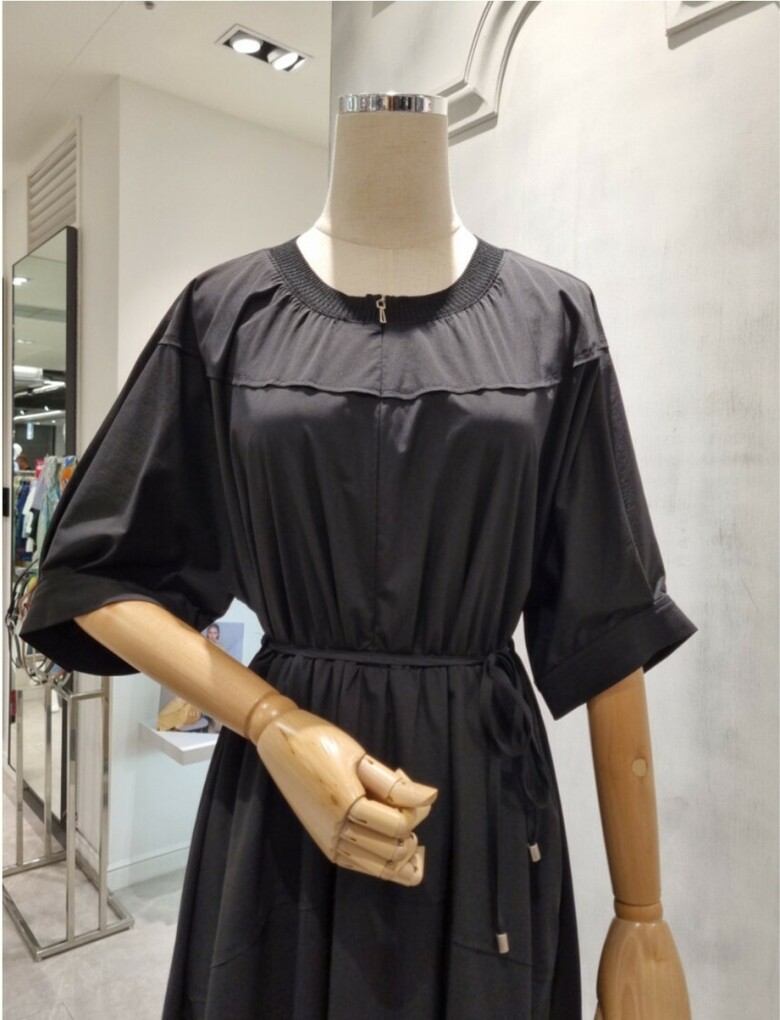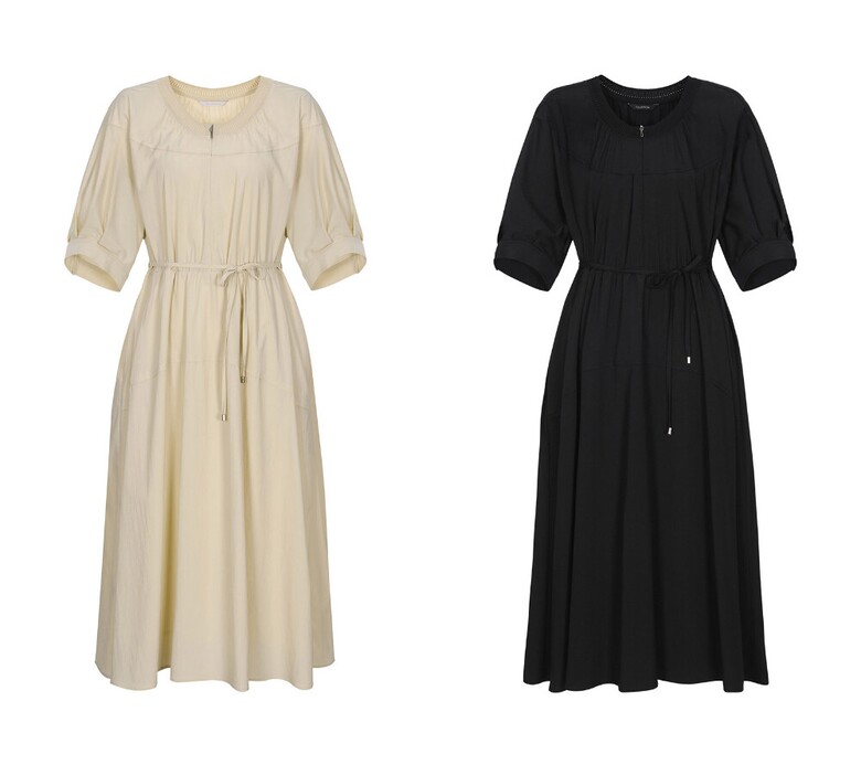 라운드넥 집업 플레어 롱 원피스 245GO58