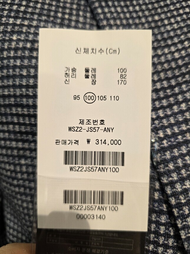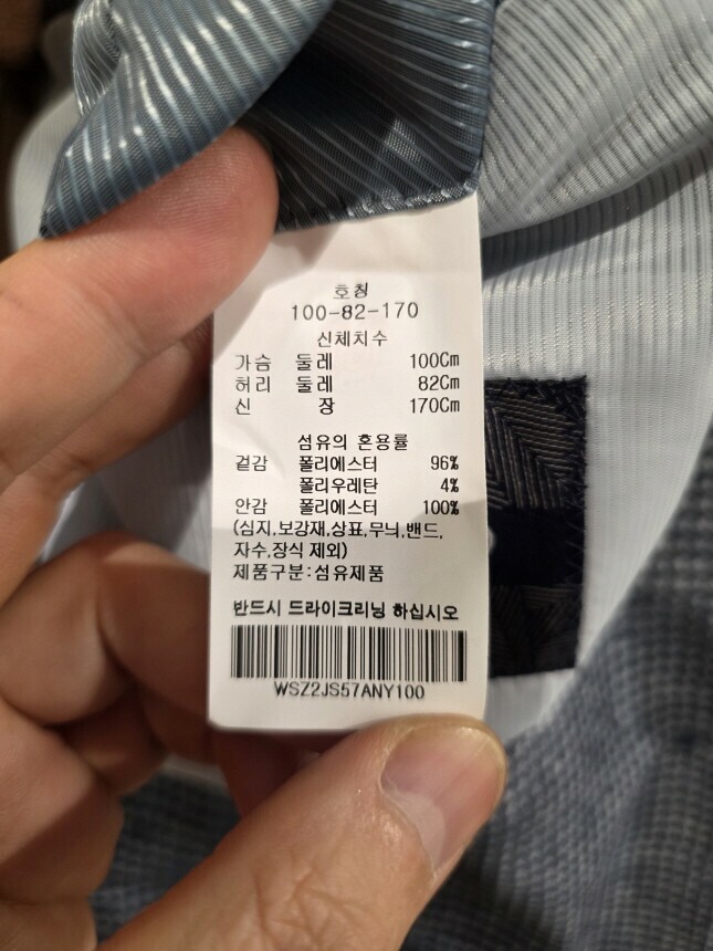겉감 : 폴리에스터 96% , 폴리우레탄 4%