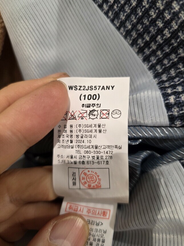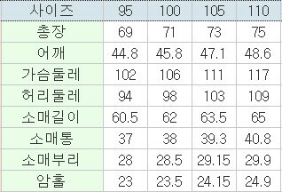 | 1. 제품 소재 (섬유의 조성 또는 혼용률을 백분율로 표시, 기능성인 경우 성적서 또는 허가서) | 겉감 : 폴리에스터 96% , 폴리우레탄 4% 안감 : 폴리에스터 100% (심 |