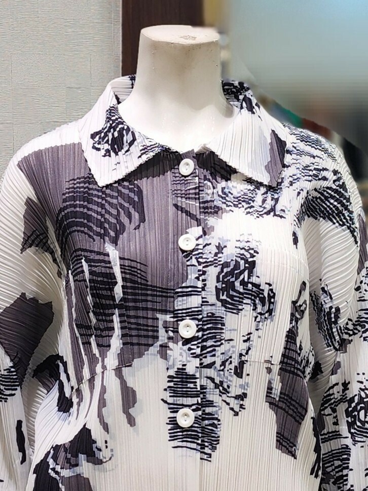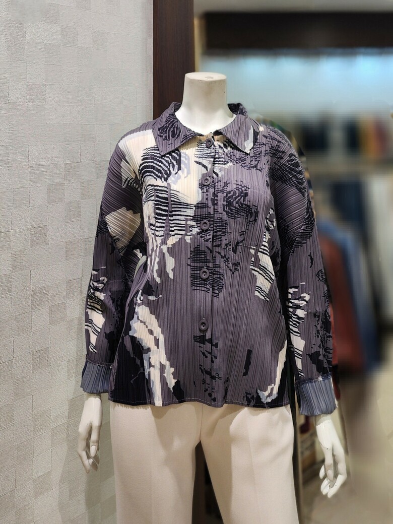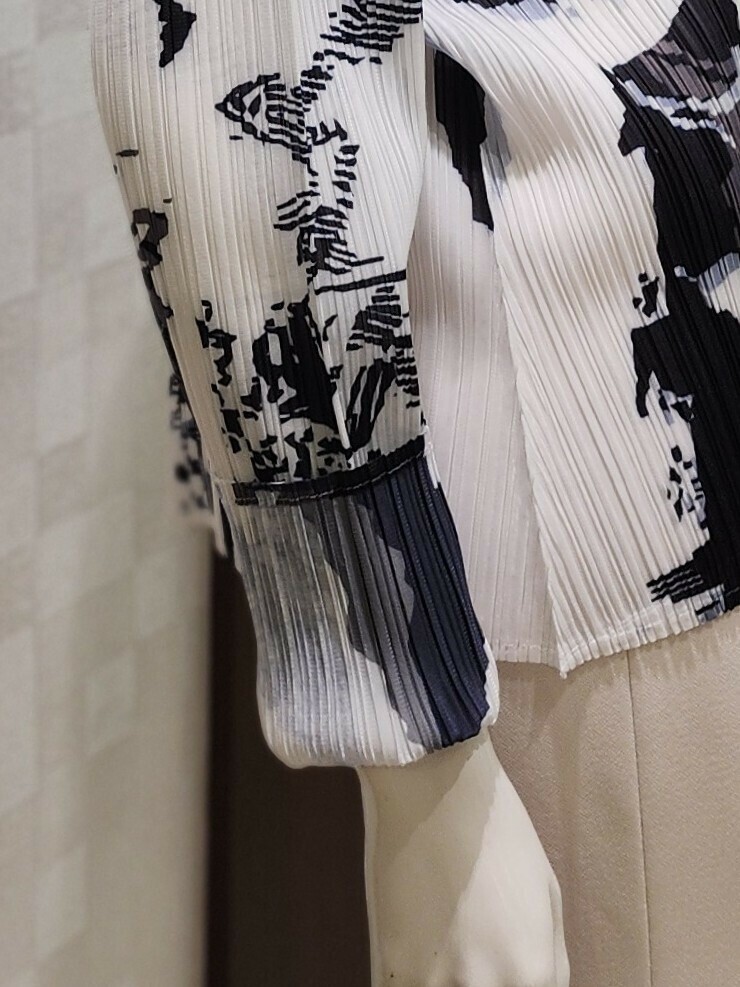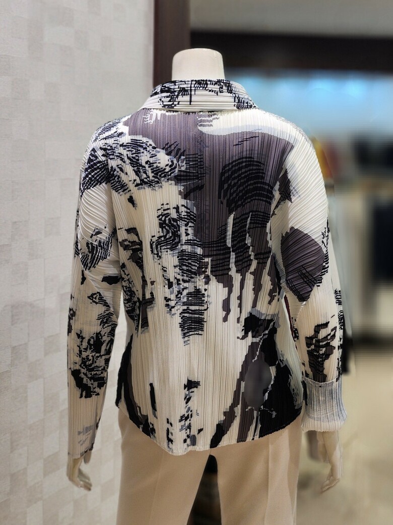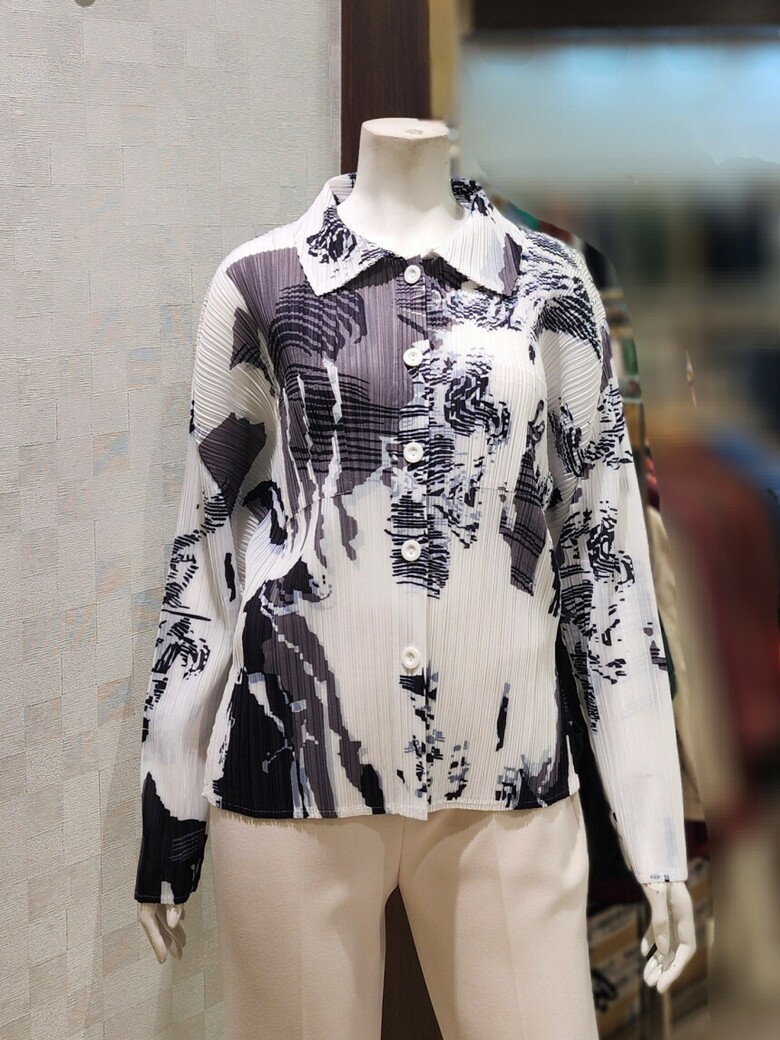 [벨라디터치] V9E2BL31 프린트 플리츠 블라우스