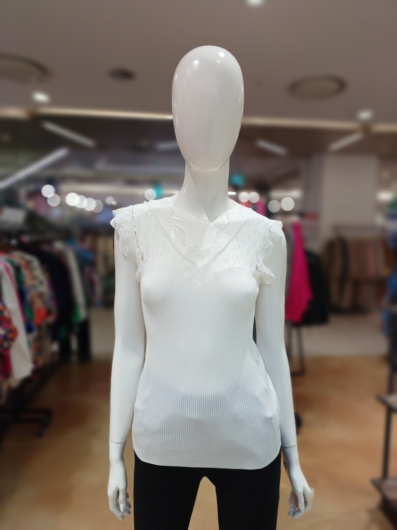 레이스 브이넥 민소매 니트입니다