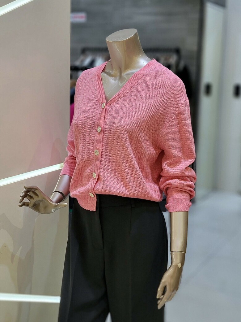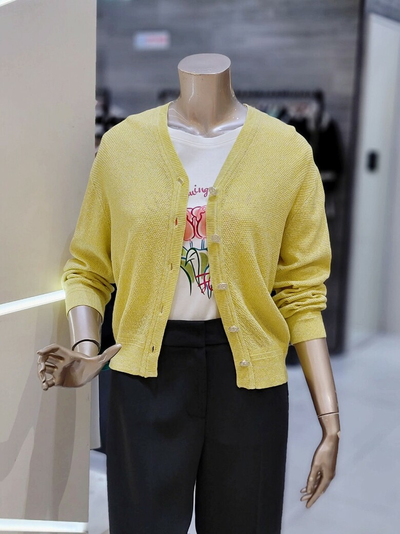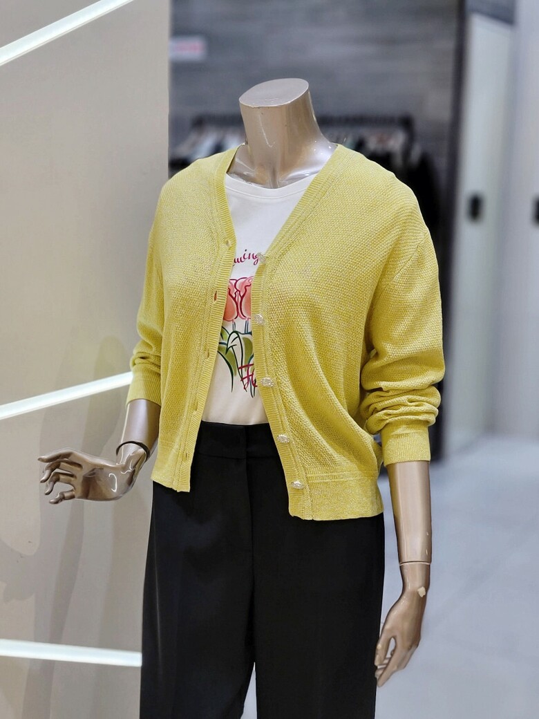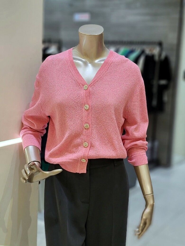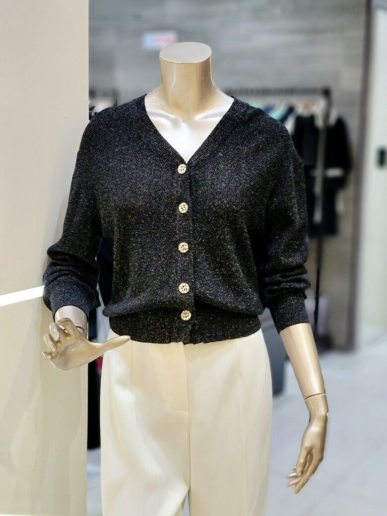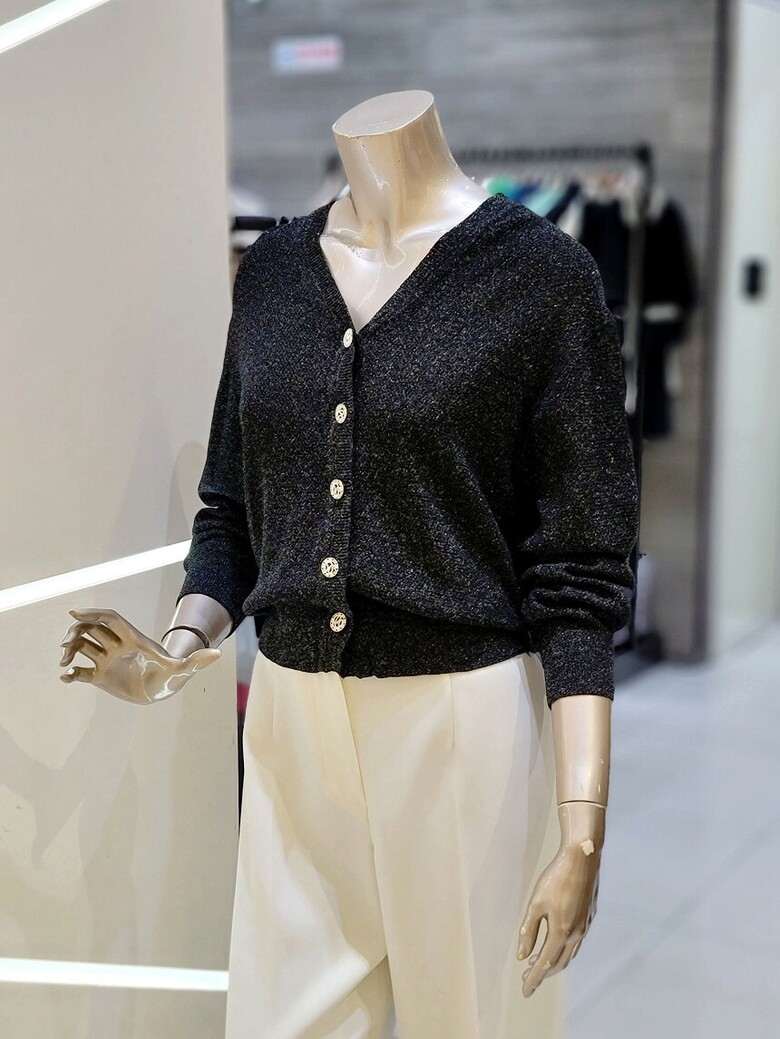 여밈 라인 메탈 버튼 포인트 클로징 가능한 카디건입니다.
