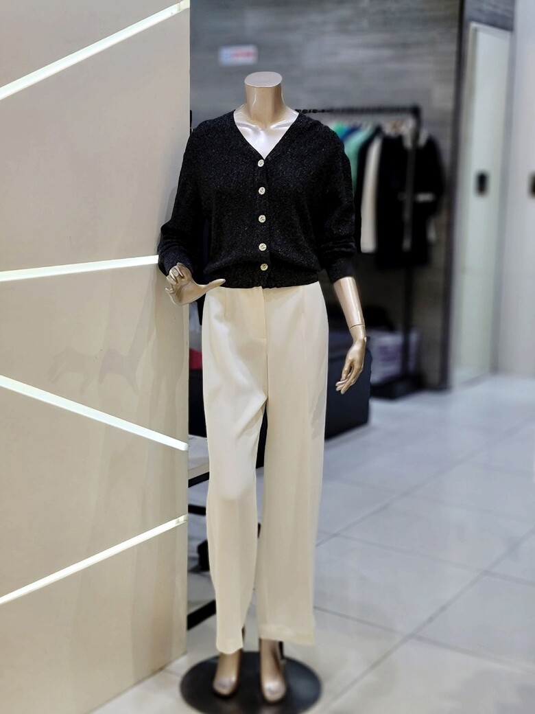 글리터리한 펄감의 니트 짜임이 돋보이며