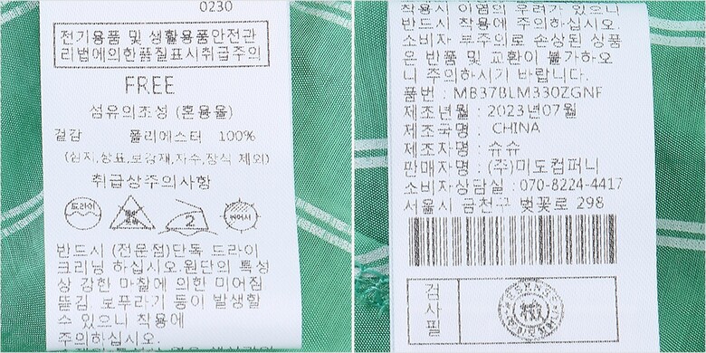 • 처음 배송된 상품상태와 다를 경우(세탁/착용 후 외출하신 경우) 반품이 불가합니다.