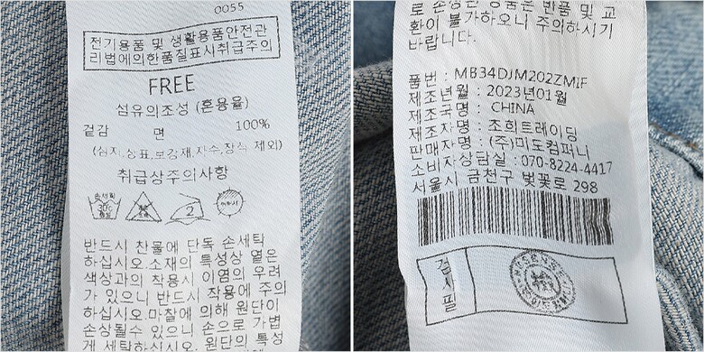 | 2. 색상 | 색상:MIDDLE TONE INDIGO(MI) |