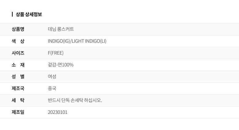 | 6. 세탁방법 및 취급시 주의사항 | 상세페이지 참조 |