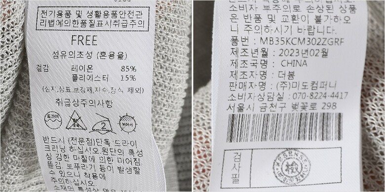 | 1. 제품 소재 (섬유의 조성 또는 혼용률을 백분율로 표시, 기능성인 경우 성적서 또는 허가서) | 겉감-폴리에스터15% 레이온85% |