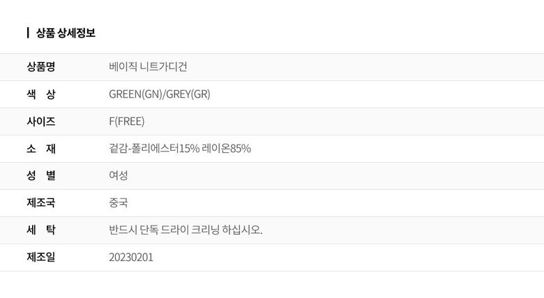 | 6. 세탁방법 및 취급시 주의사항 | 상세페이지 참조 |