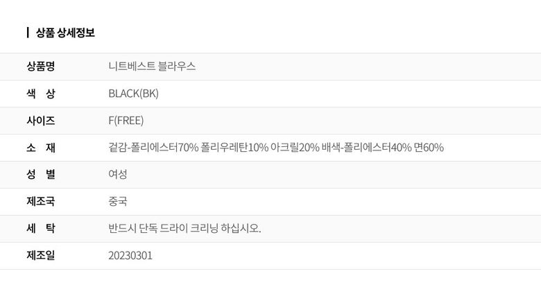 | 6. 세탁방법 및 취급시 주의사항 | 상세페이지 참조 |