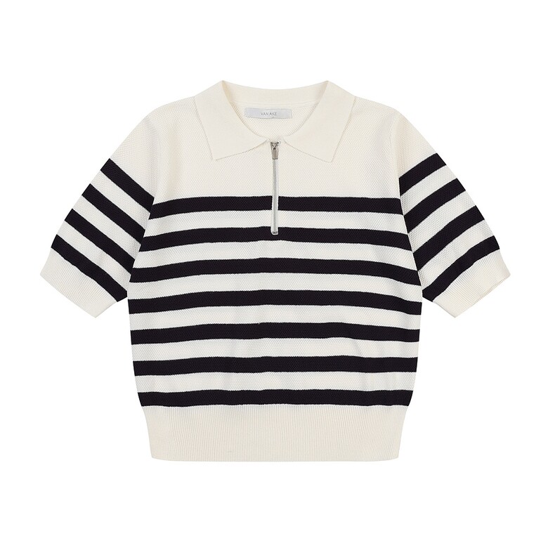[반에이크] ST패턴 반집업 반팔니트_VB35KTQ303Z