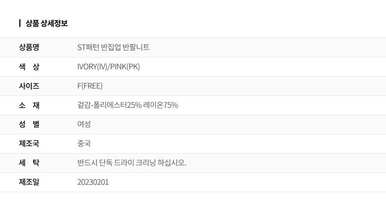 | 2. 색상 | 색상:IVORY(IV)/PINK(PK) |