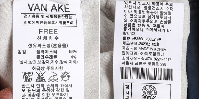 | 6. 세탁방법 및 취급시 주의사항 | 상세페이지 참조 |