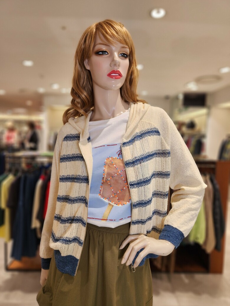 베네통 스카시 스트라이프후드가디건 BAKC59431