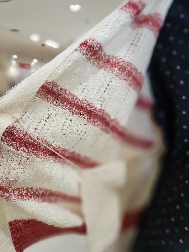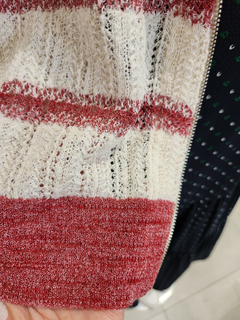 7.니트류는 자가드 프린트 기법으로 제작되어 앞부분에 예쁜 프린트처리가 되어 있습니다