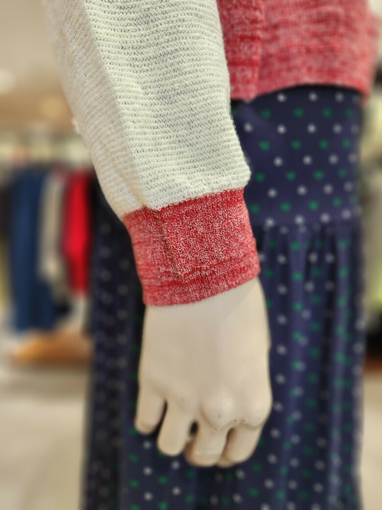 얇고 가벼운 마 혼방의 가슬거리는 니트소재를 사용하였고
