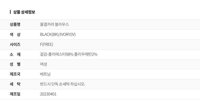 | 2. 색상 | 색상:BLACK(BK)/IVORY(IV) |