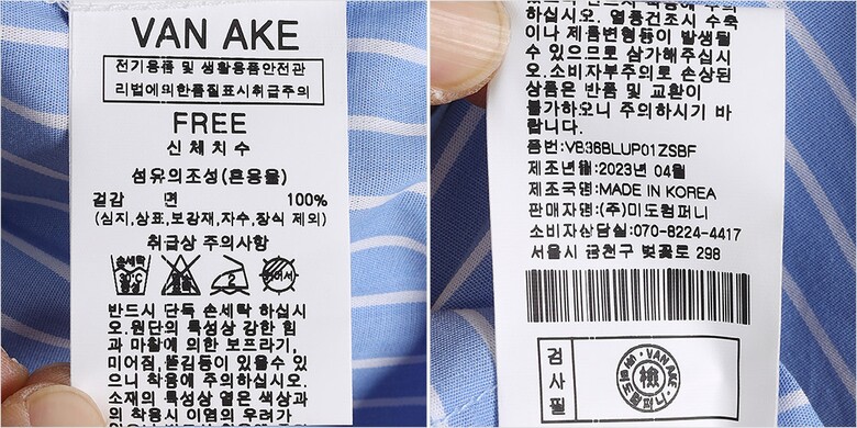 | 6. 세탁방법 및 취급시 주의사항 | 상세페이지 참조 |