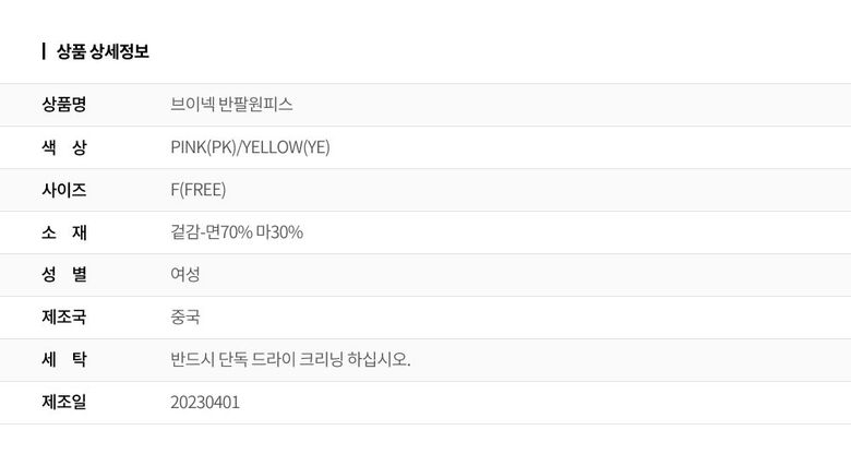 | 6. 세탁방법 및 취급시 주의사항 | 상세페이지 참조 |