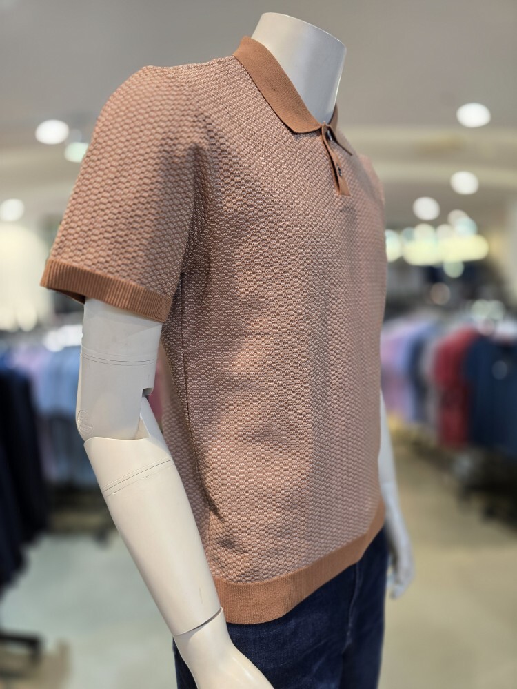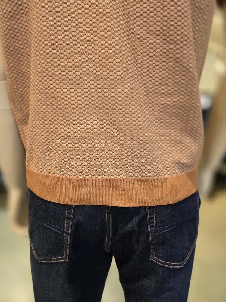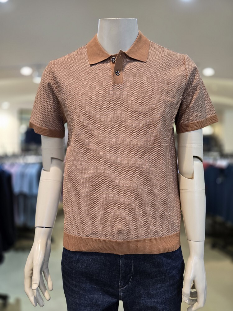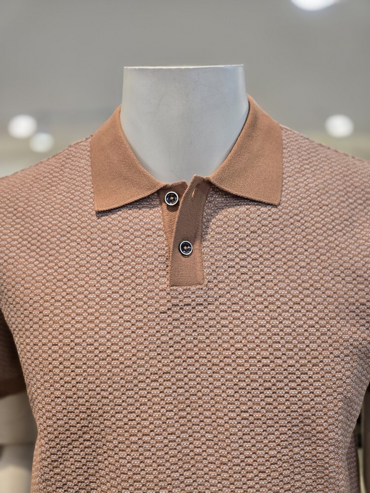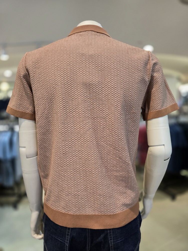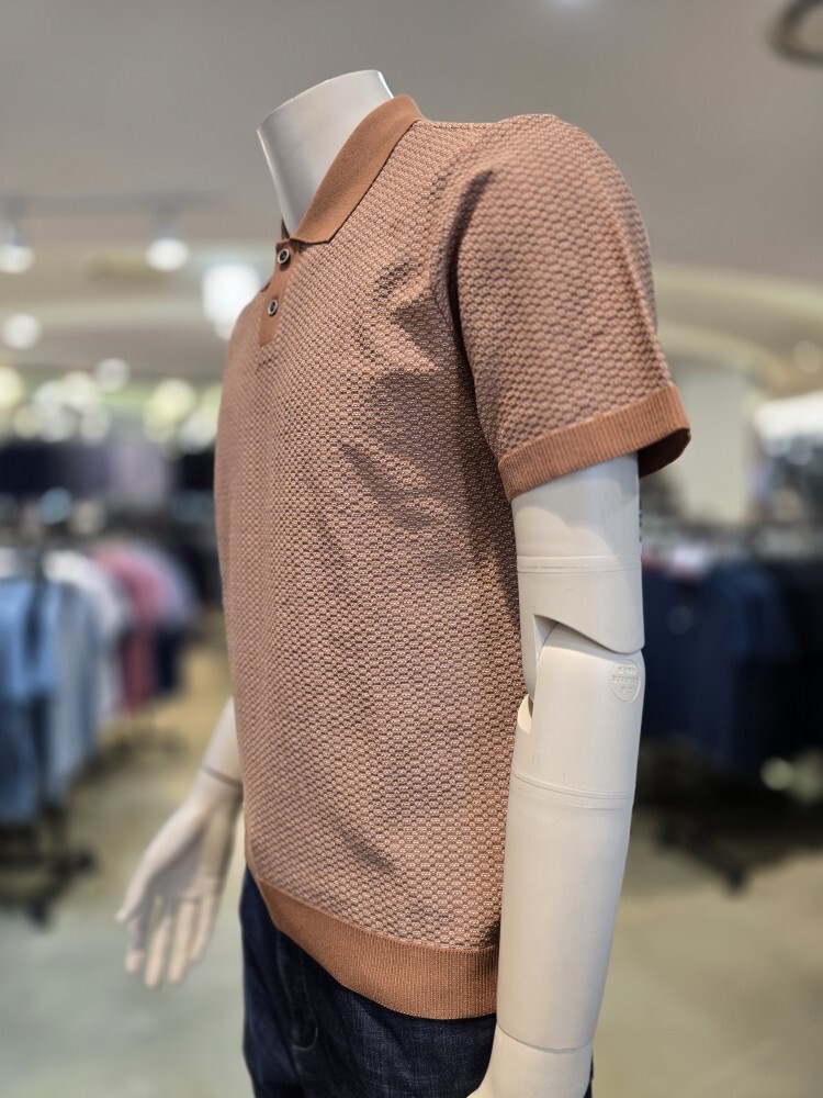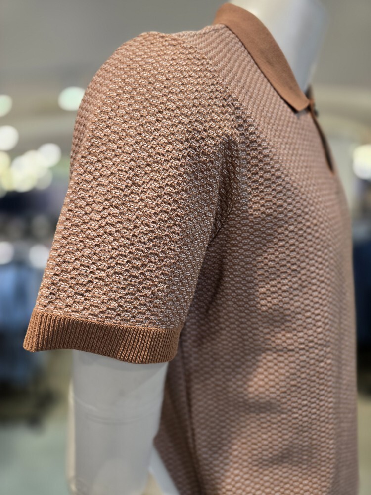 냉감으로 쾌적하게 착용할 수 있는 폴리 혼방 리버스폴로니트입니다