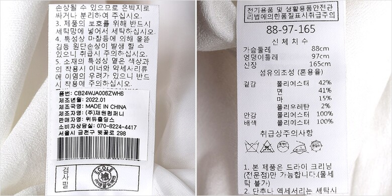 • 처음 배송된 상품상태와 다를 경우(세탁/착용 후 외출하신 경우) 반품이 불가합니다.