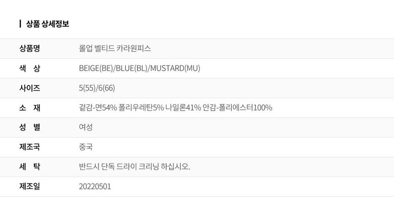 | 2. 색상 | 색상:BEIGE(BE)/BLUE(BL)/MUSTARD(MU) |