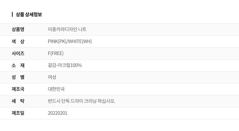 | 2. 색상 | 색상:PINK(PK)/WHITE(WH) |