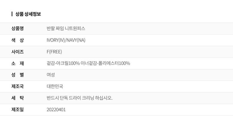 | 2. 색상 | 색상:IVORY(IV)/NAVY(NA) |