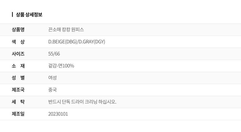 | 6. 세탁방법 및 취급시 주의사항 | 상세페이지 참조 |
