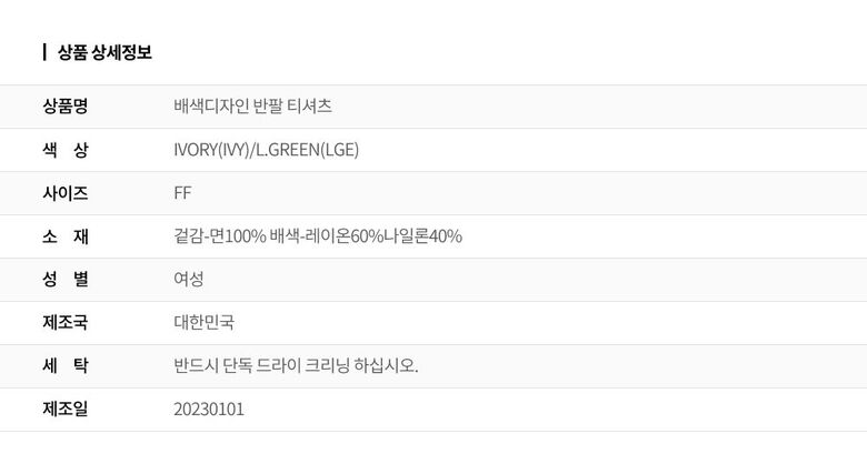 | 2. 색상 | 색상:IVORY(IVY)/L.GREEN(LGE) |