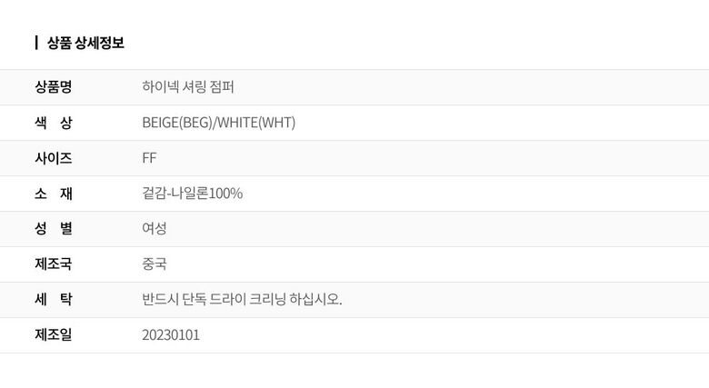 2. 색상 색상:BEIGE(BEG)/WHITE(WHT)