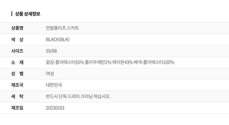 | 6. 세탁방법 및 취급시 주의사항 | 상세페이지 참조 |