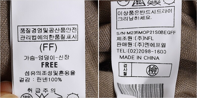 | 1. 제품 소재 (섬유의 조성 또는 혼용률을 백분율로 표시, 기능성인 경우 성적서 또는 허가서) | 겉감-린넨100% |