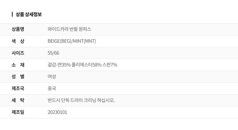 | 2. 색상 | 색상:BEIGE(BEG)/MINT(MNT) |