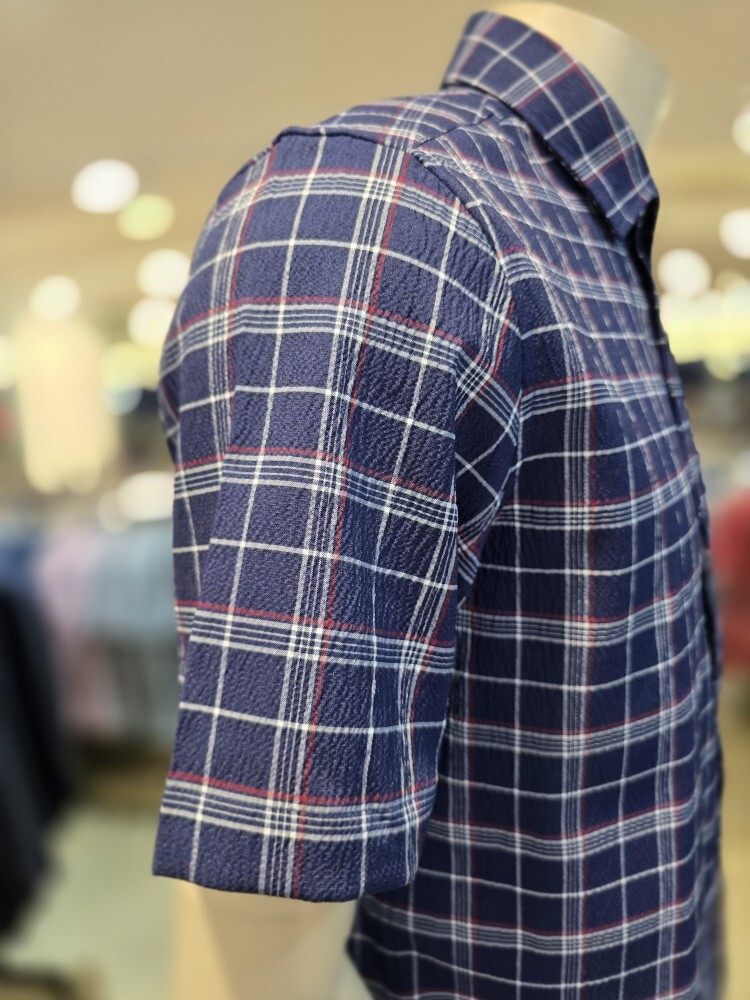 폴리혼방의 미디엄체크패턴의 세련된 남방입니다.